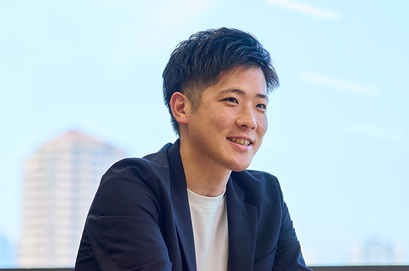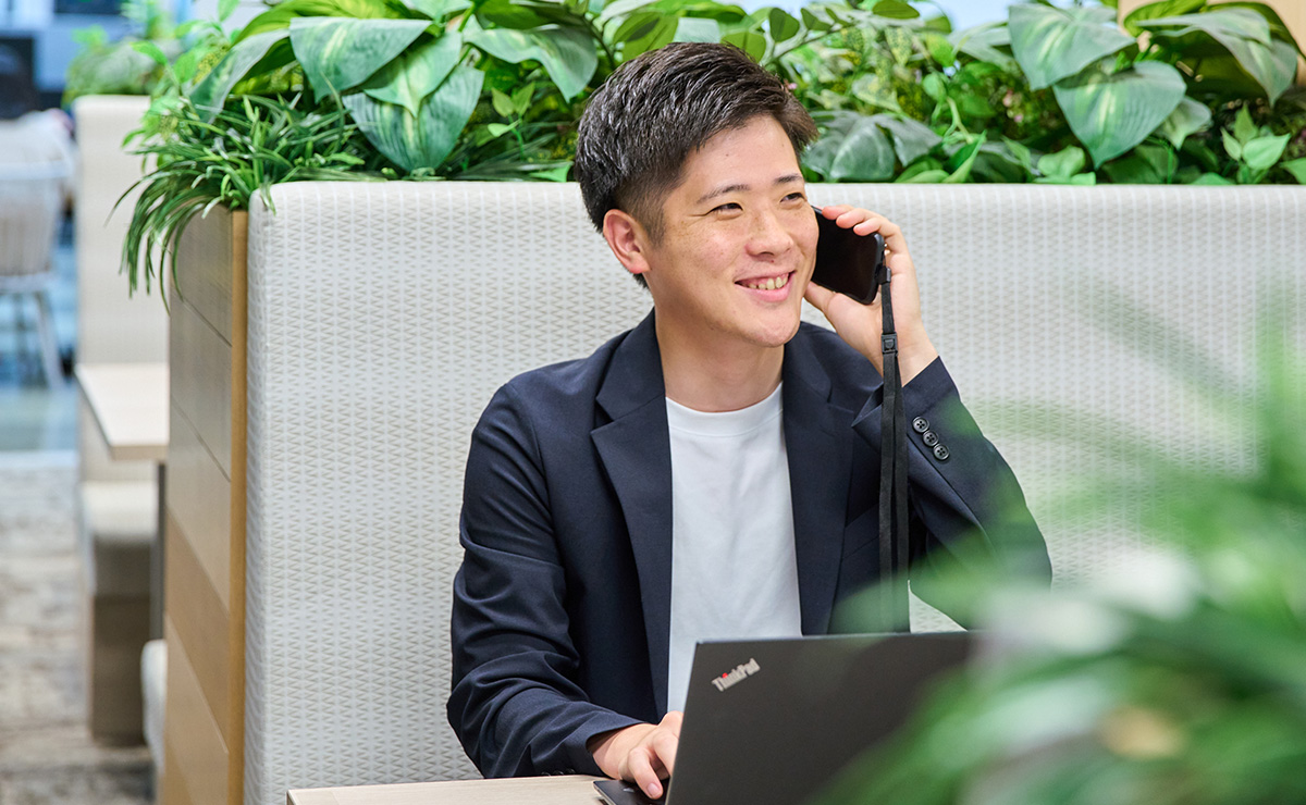 私はもともと、大学のゼミで地域の金融機関と一緒に活動していて金融機関が身近だったこともあり、金融関係の会社を志望していました。IT業界に興味があったわけではなかったのですが、ITが伸び盛りの業界だったことや知り合いからのすすめもあって、範囲を広げる中で出会ったのがこの会社でした。決め手は"人"です。選考会場までの道中やエレベーターに乗る際など、日立システムズの従業員の方々の人当たりが良くて、安心して働けると思ったのです。職場の雰囲気はとても良く「親しき仲にも礼儀あり」で、かつ意見も言いやすいと感じます。入社してからは、一貫して金融業界への営業に従事しています。現在は新規顧客開拓を進めていますが、会社としての関係性がゼロのところからスタートしなければならないので大変さはあります。新規顧客開拓となれば、特に知識面が重要です。初めて会ったお客さまに、次もまた会ってほしいと思っていただくために、さまざまな情報にアンテナを張り自己へインプットする姿勢は大事にしています。新しい知見に触れることや、新しい人間関係を構築すること、それらは大変さもありますが、自身のスキルアップにつながっていて、やりがいにもなっています。