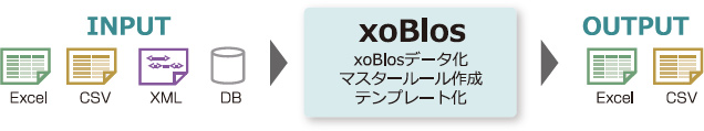 xoBlos(ゾブロス)とは、Excelなどを使用した、データの複写、集計、分類分析業務をマクロやVBAなどを使わずにノンプログラミングで自動化するツールです。大量データの高速処理が可能です。
