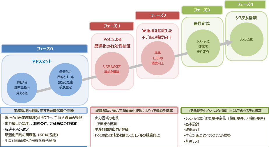 生産計画最適化支援サービスは5つのフェーズで構成しています。
