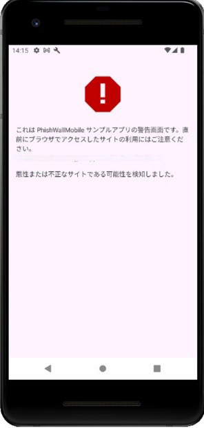 金融機関のサイトを装って情報詐取などを行うような不審なサイトへのアクセスを検知します。検知した場合には警告メッセージが表示されます。