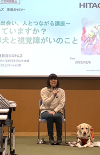 9月30日―10月1日の2日間、盲導犬総合支援センター様と連携し、泉屋東京店様にて盲導犬セミナーを実施しました。社長をはじめ、約60名の従業員の皆さまにご参加いただき、盲導犬の役割や視覚障がいについて理解を深めていただきました。セミナー終了後は、盲導犬ダレンとふれあいタイムもあり、仕事中とは違うリラックスした表情のダレンに、参加者の皆さまも自然と笑顔に。温かく、心に残る交流のひとときとなりました。